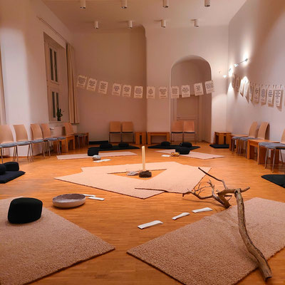 Mit Impulsen, Austausch, Klang- und Bildmeditation, gemeinsamem Singen.